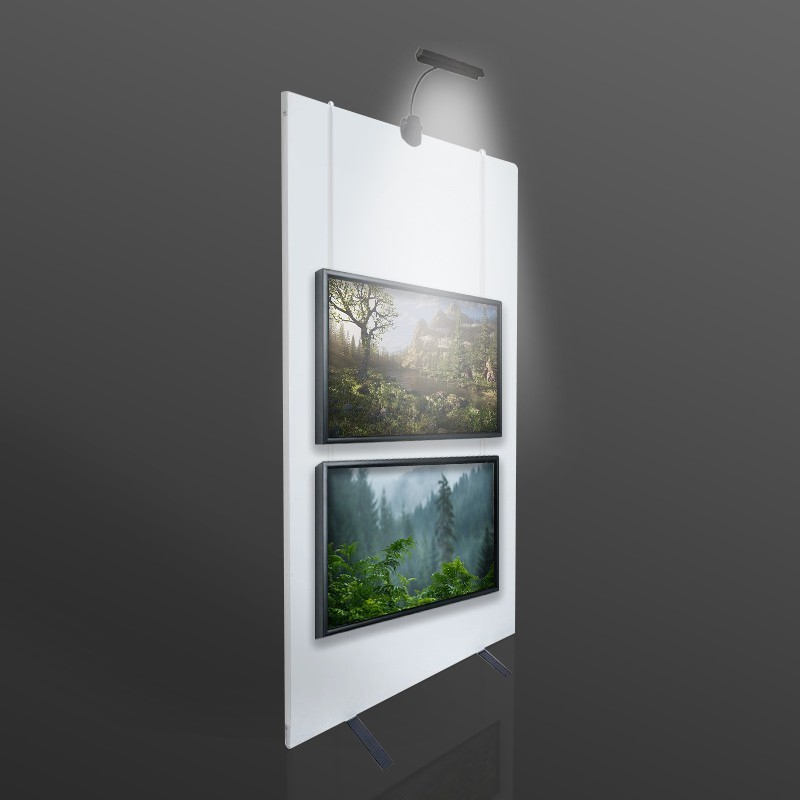 The Clip-on Picture Light securely attaches to expo panels without the need for tools, accommodating thicknesses of up to 2 inches (50mm).