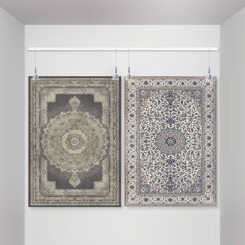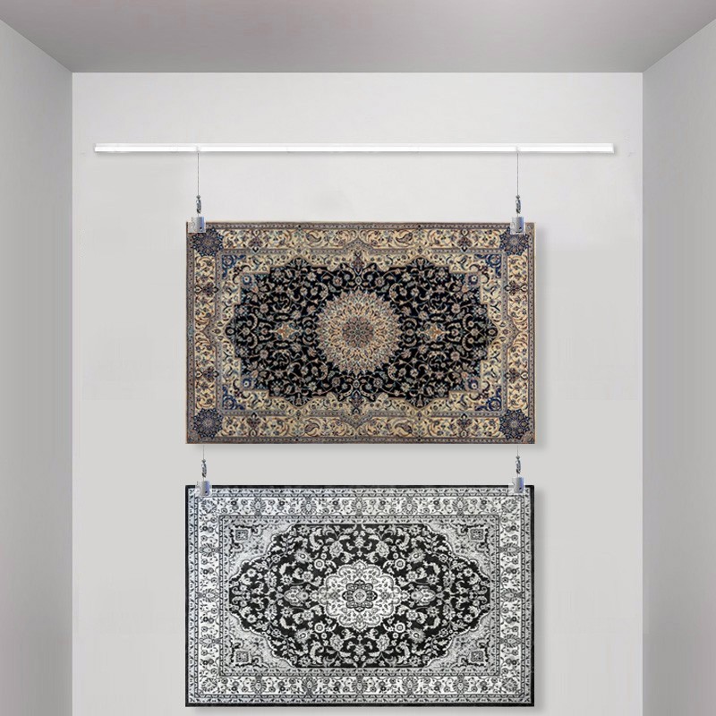 - The most common Wall Rug hanging system can support up to 100 KG of weight with the help of J-Rail, Steel cables & Rug clamp.
